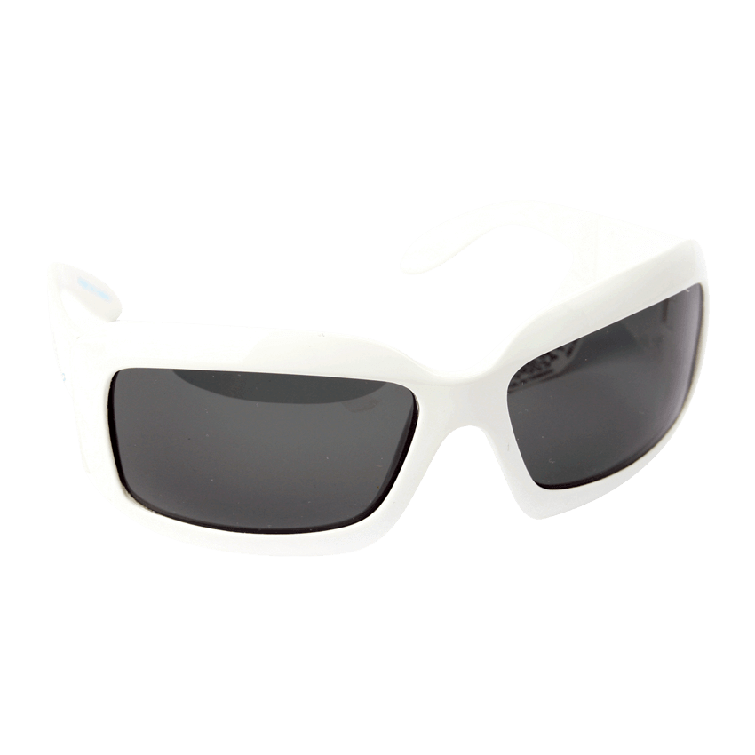 Polariserte solbriller i klassisk utforming for barn i alderen 4-10 år. Disse hvite solbrillene passer for gutter og jenter i alderen 4-10 år, og gjør seg like godt på stranden som på byen eller andre steder man ferdes i solen.