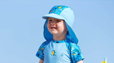 Våre solhatter med nakkeskygge er laget i et behagelig og lett stoff som tørker fort. Dette bidrar til at barnet beholder solhatten på hele dagen.