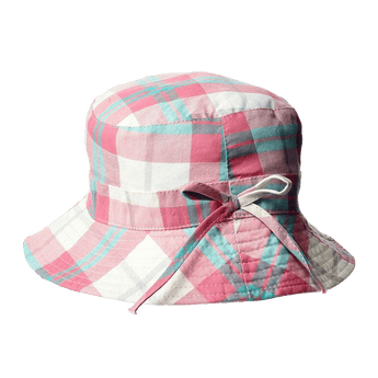 UPF50+ solhatt for barn og baby - Lys rosa, hvit og turkis med rutemønster.
